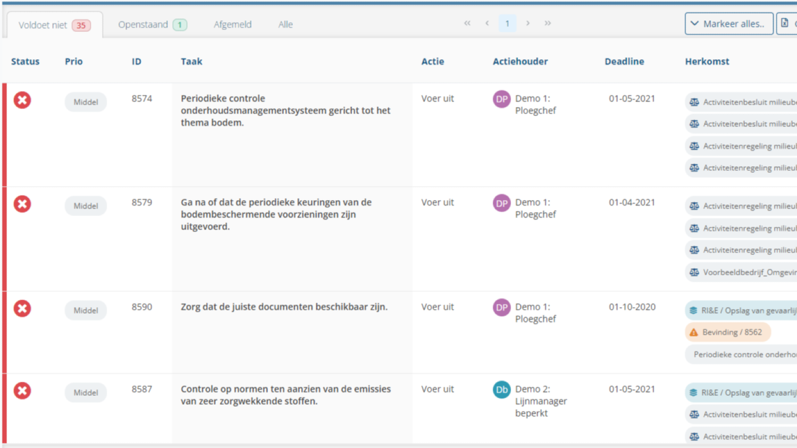 - De meest urgente taken staan bovenaan.