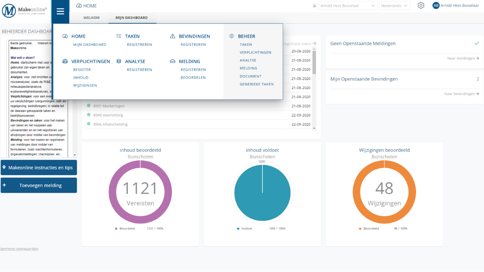 - Het navigatiemenu en de menubalk zijn verbeterd. Hierdoor kun je nu direct navigeren naar de pagina waar je heen wilt. Daarnaast hebben we de pagina's die met het inrichten en beheren van Makeonline te maken hebben nu apart gezet. Zo wordt benadrukt dat het inrichten en beheren een ander soort handeling is dan het dagelijks gebruik.